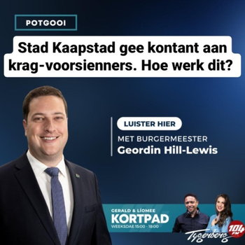 Die Stad Kaapstad het aangekondig dat hy nou kontant sal betaal vir oortollige elektrisiteit wat in die elektrisiteitsnetwerk ingevoer word. Kortpadspan, Gerald en Liomee het uitgevind hoe die proses gaan werk.