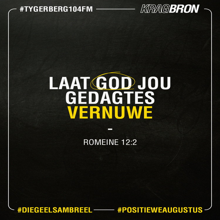 Daagliks het ons 'n inspirasie boodskap wat aansluit by ons Kragbron teksvers om jou te inspireer.