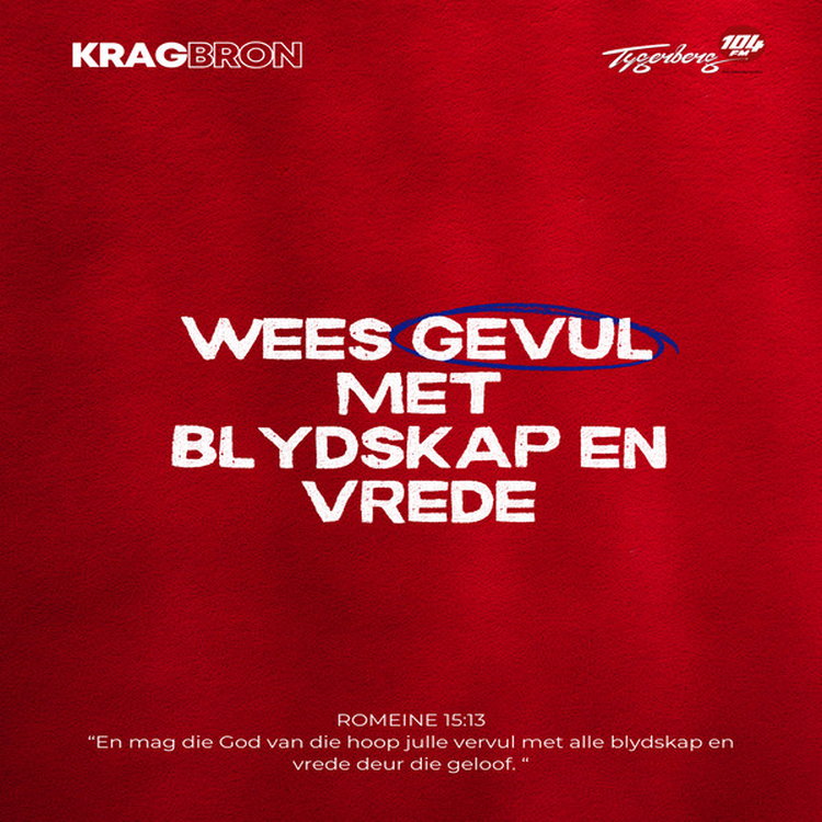 En mag die God van die hoop julle vervul met alle blydskap en vrede deur die geloof. ROMEINE‬ ‭15‬:‭13‬ ‭AFR53‬‬‬‬‬‬‬‬‬‬‬‬‬‬