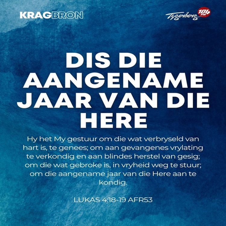 Hy het My gestuur om die wat verbryseld van hart is, te genees; om aan gevangenes vrylating te verkondig en aan blindes herstel van gesig; om die wat gebroke is, in vryheid weg te stuur; om die aangename jaar van die Here aan te kondig. LUKAS 4:18-19 AFR53