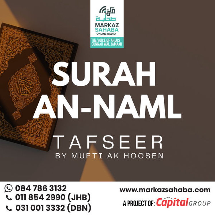 Tafseer Of Sura Al-Naml - Presented by Mufti A.K. Hoosen, a globally respected scholar known for his deep insight, authentic scholarship, and clear presentation, this Tafseer brings together classical explanations with practical guidance for the modern believer